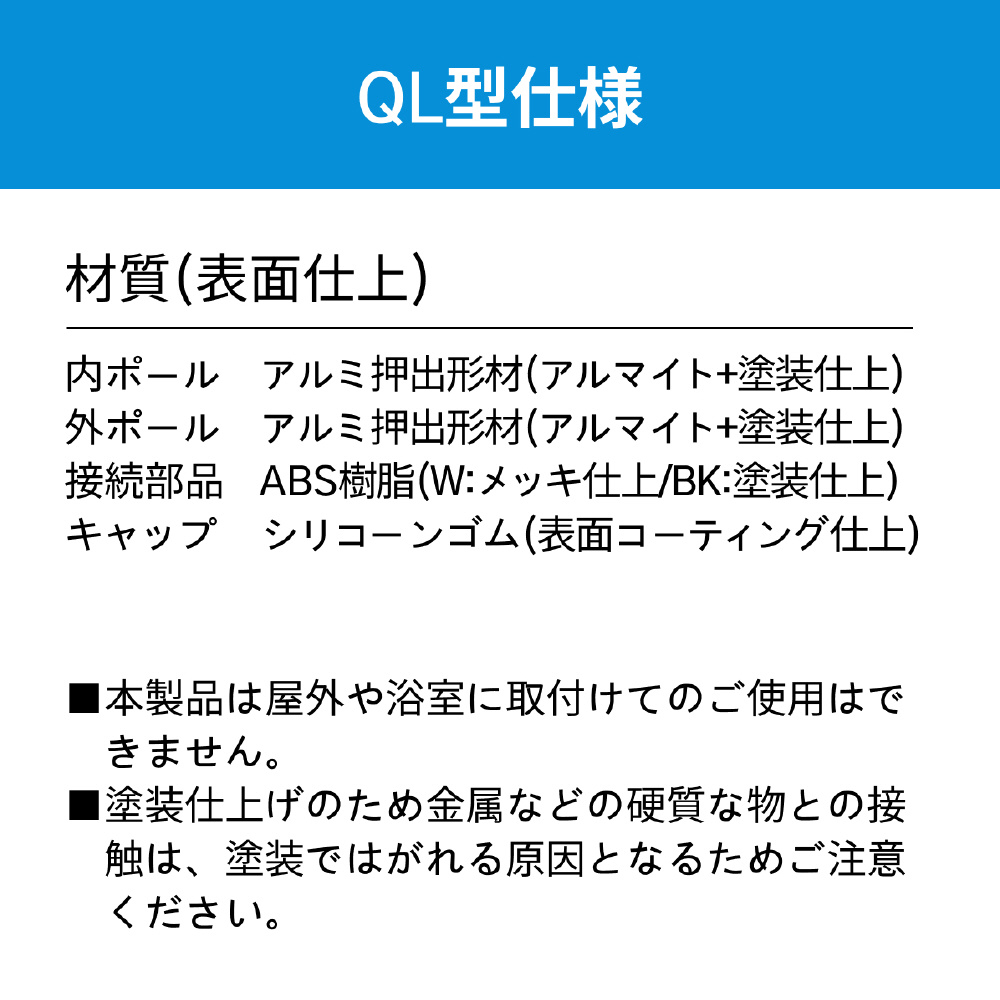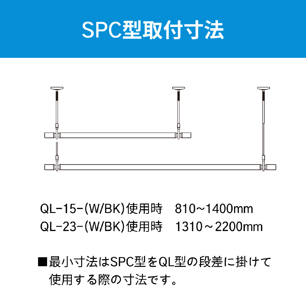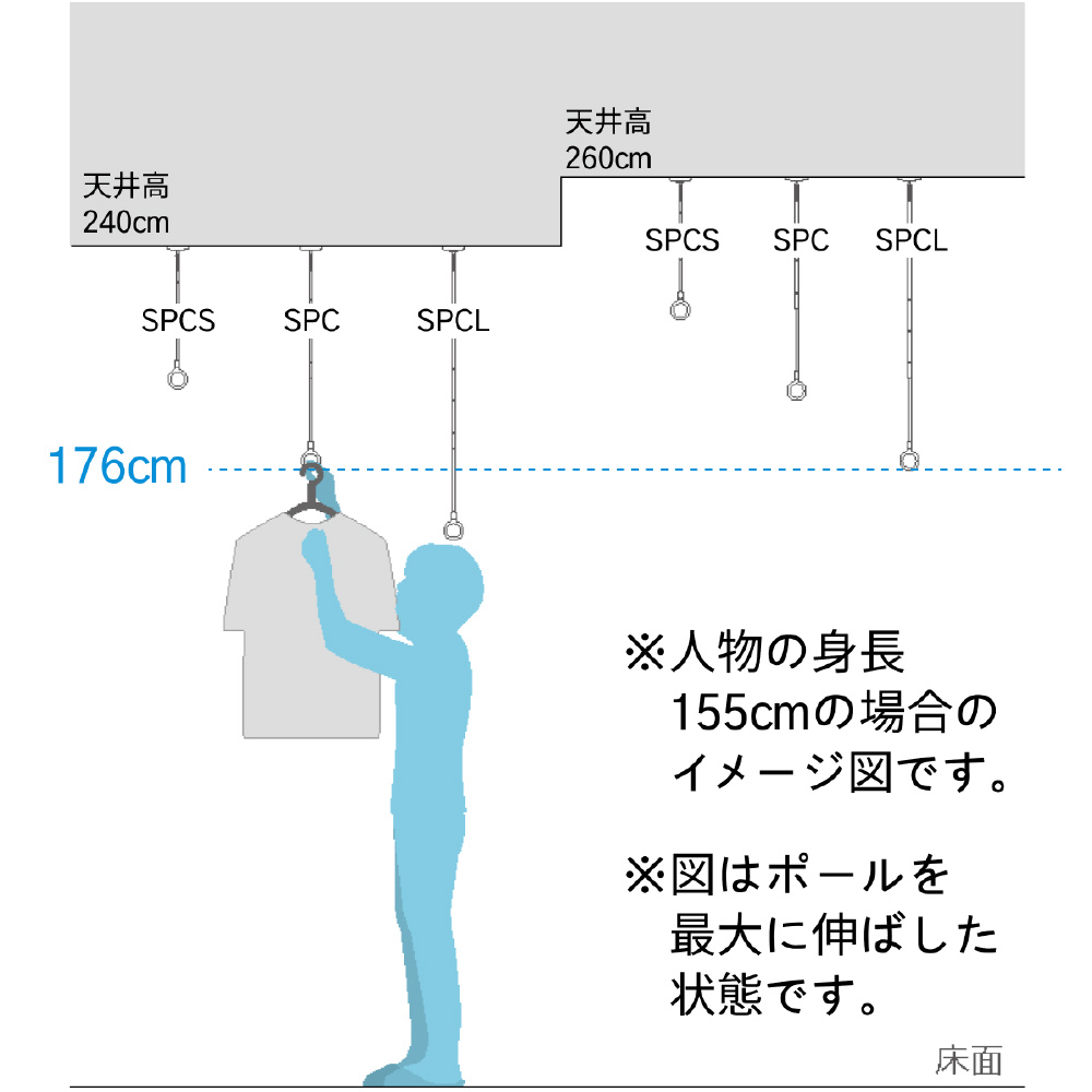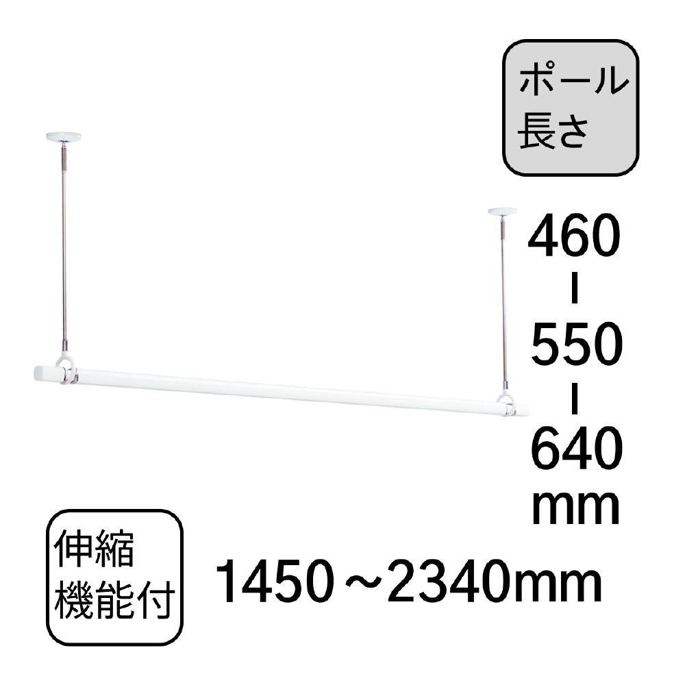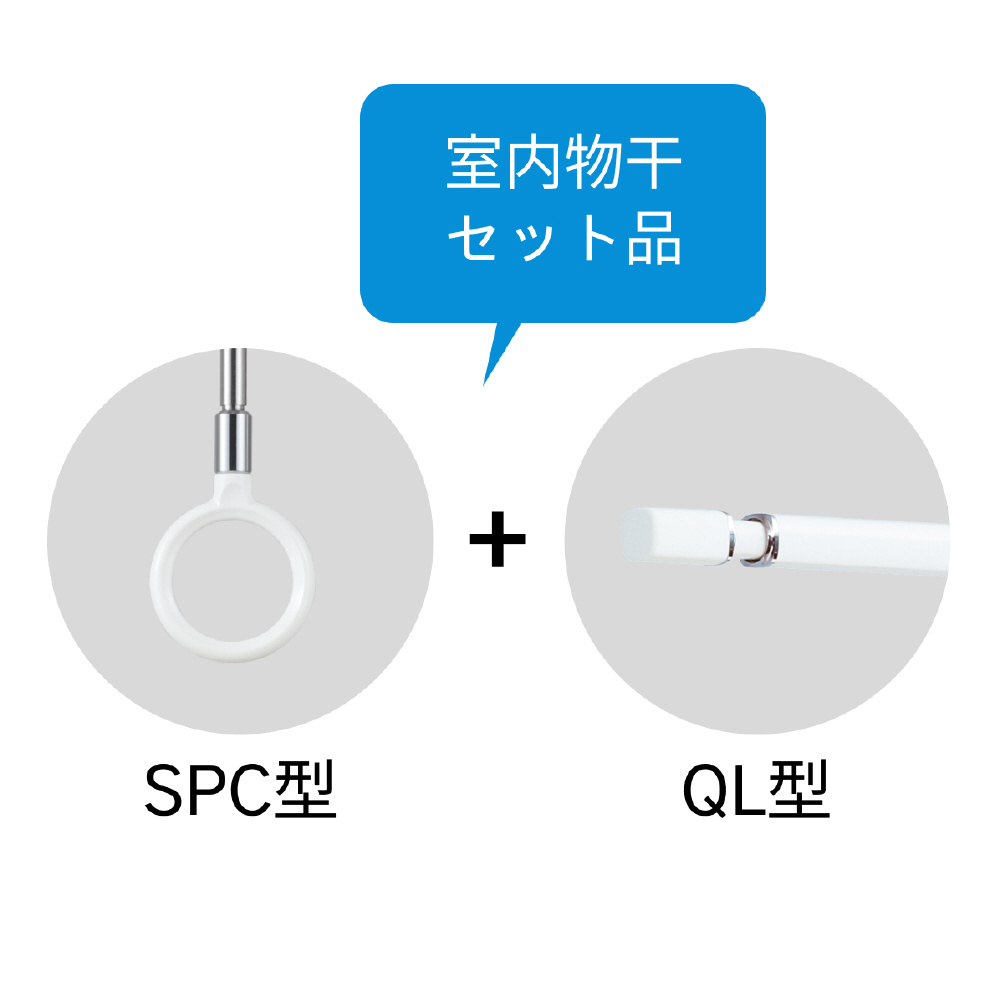 室内用天井付スポット型物干 QSC型 竿セット 1組 ホスクリーン ホワイト QSC-23-W