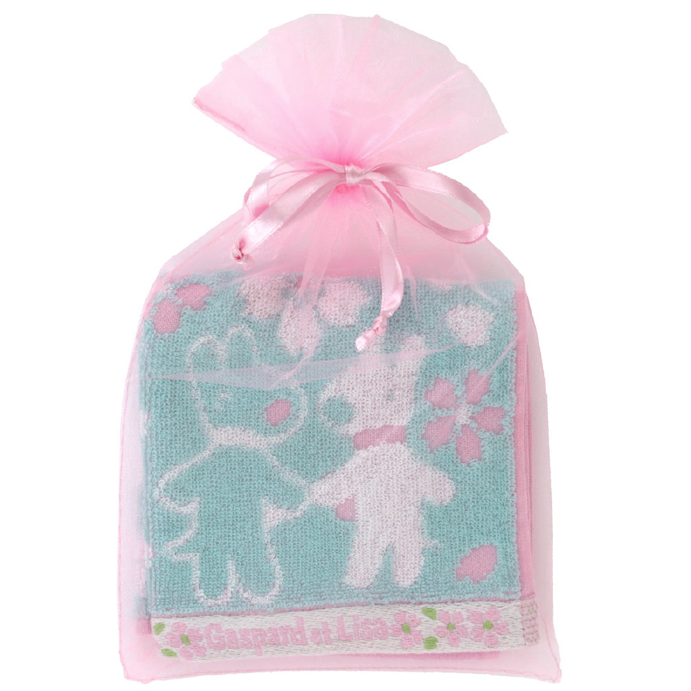 オーガンジーの巾着に、日常使いしやすいタオルが入った、ギフトにもぴったりなアイテム。