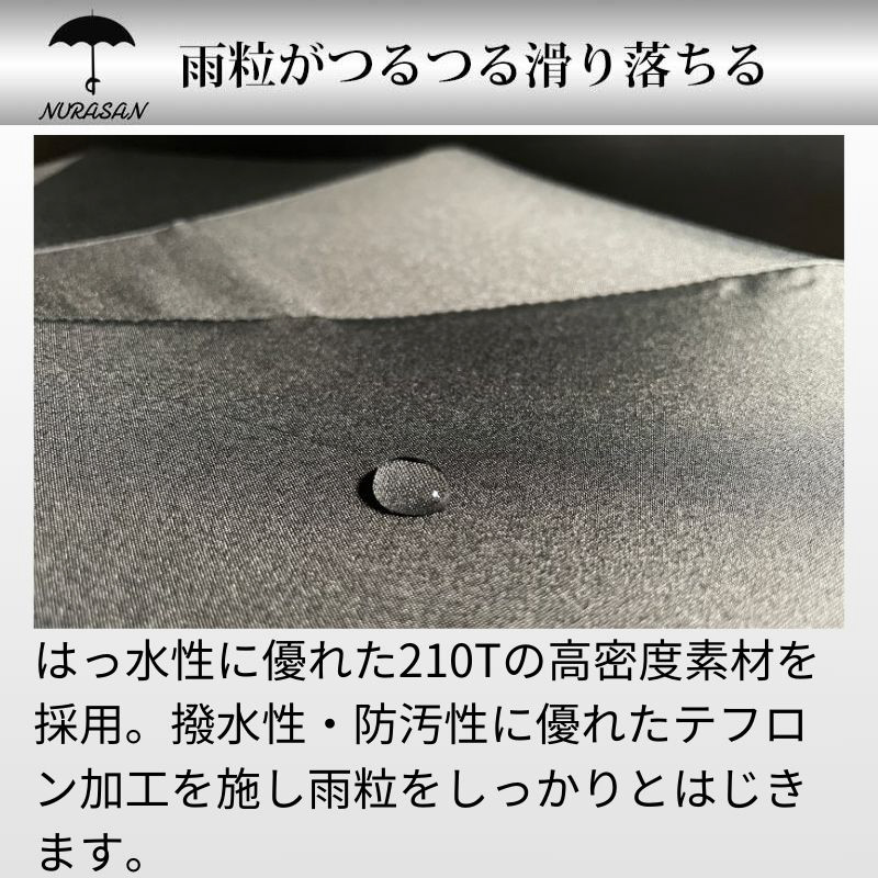 高密度の高撥水素材をさらにテフロン加工。撥水性に優れた生地で雨粒を残しません。