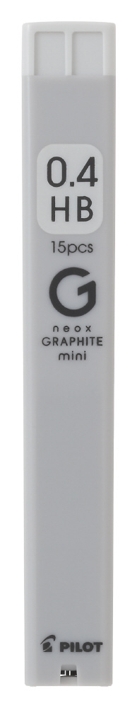 高純度グラファイト配合で折れにくさ・濃い筆跡・なめらかさが特長のグラファイト芯0.4mmを15本搭載。定番品としてHB、B、2Bの3濃度展開。芯径は0.4mmのみ。替芯ケースは、持ち運びやすいスリムな芯ケースを採用。定番品3色に加えてアクアブルー、ベビーピンクの2色を限定品として販売(HBのみ)。