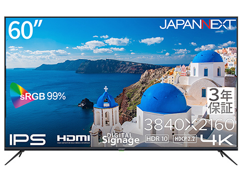 「【3年保証モデル】60インチ IPSパネル搭載 4K(3840x2160)解像度 大型液晶モニター HDMI ビデオ/音声入力端子 コンポーネント入力端子 オプティカル出力端子 HDR USB再生対応 サイネージ」