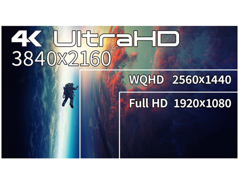 60インチのIPSパネルを搭載し、4K(3840x2160)解像度に対応したHDR対応の大型液晶モニターとなります。4KはフルHD(1920×1080)解像度の約4倍の作業領域を実現する3840×2160ドットの解像度となり、高精細な表示を実現できます。