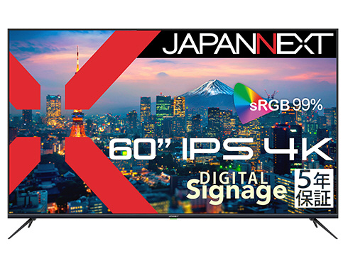「【5年保証モデル】JAPANNEXT 60インチ IPSパネル搭載 4K(3840x2160)解像度 大型液晶モニター HDMI ビデオ/音声入力端子 コンポーネント入力端子 オプティカル出力端子 HDR USB再生対応 サイネージ」