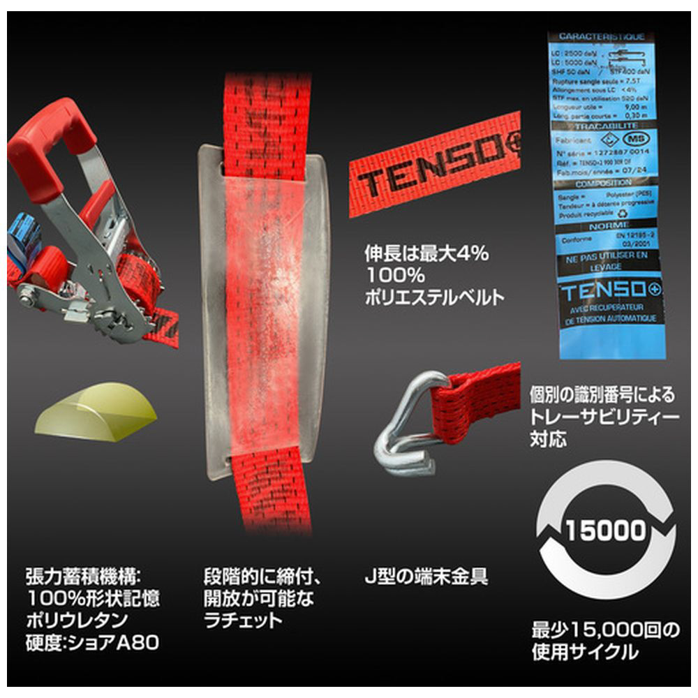 自動張力回復機能付きベルト荷締機で、荷物の緩みを防止。安定した締め付けで安心安全。
