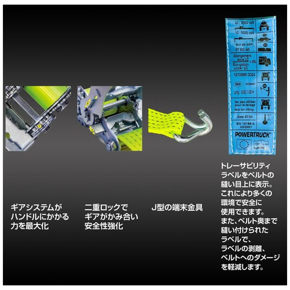 DAIDОHANT パワートラック(POWERTRUCK)ベルト荷締機 (ベルト幅)50mm×(固定側)1m×(巻側)7m