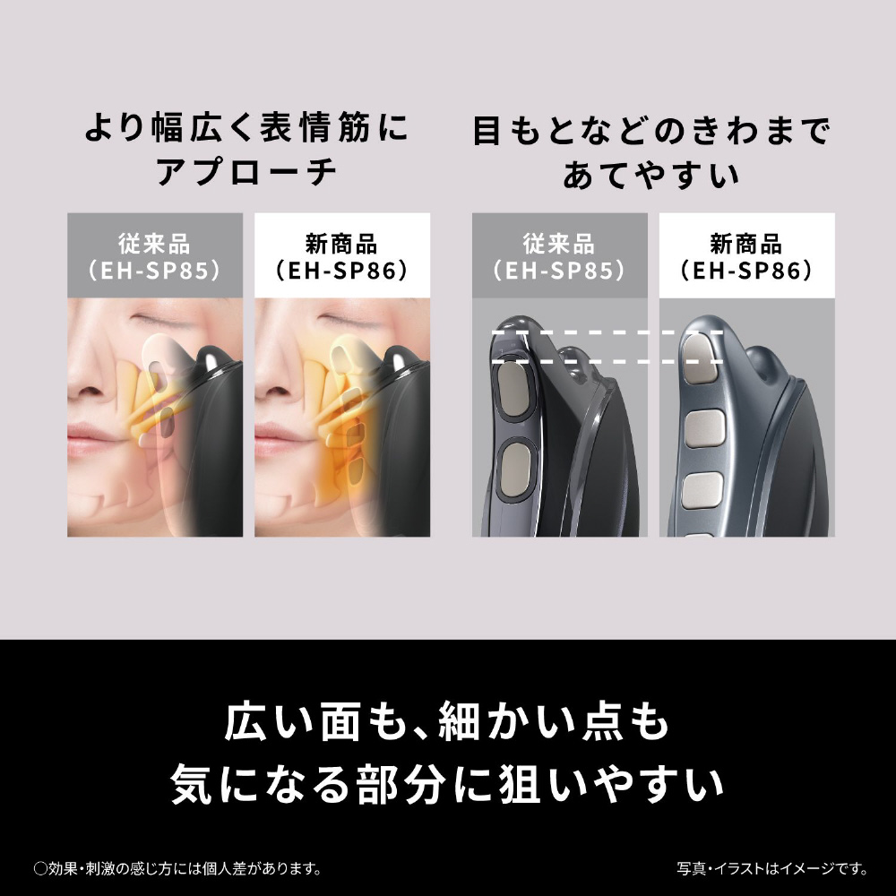 ・EMS電極を4つ搭載、目の際にも当てやすい配値。複合的なEMS出力を実現、