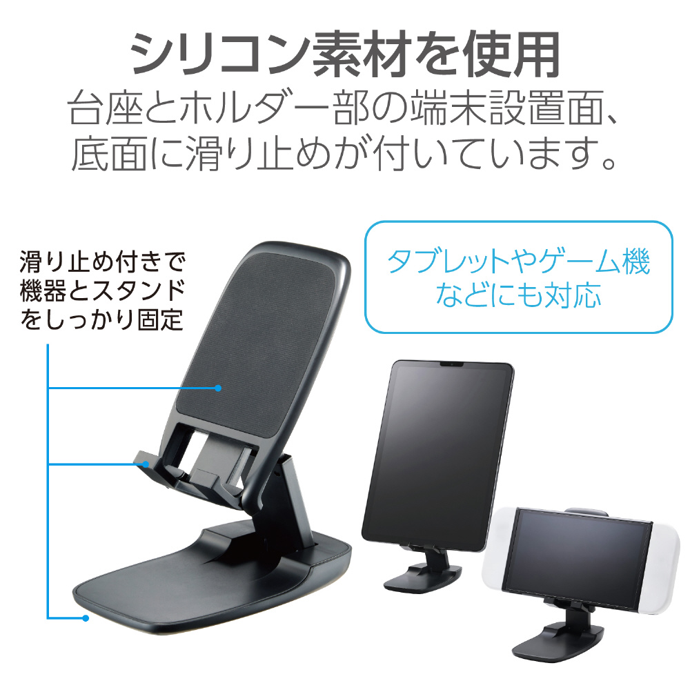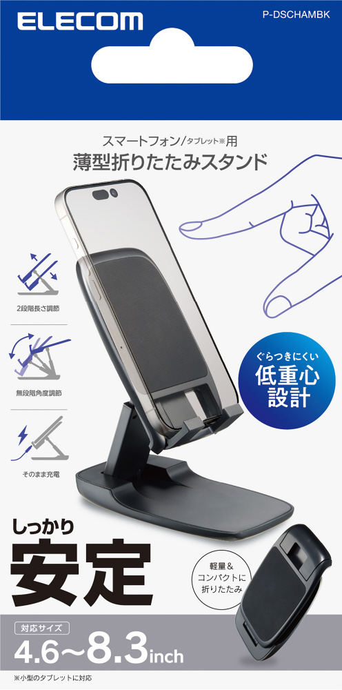 スマホスタンド 卓上 スタンド 折り畳み 無段階角度調整 高さ調整可 グラつきにくい 【 4.6~8.3インチ iPhone Android iPad スマホ タブレット NINTENDO SWITCH 各種対応 】 携帯スタンド P-DSCHAMBK