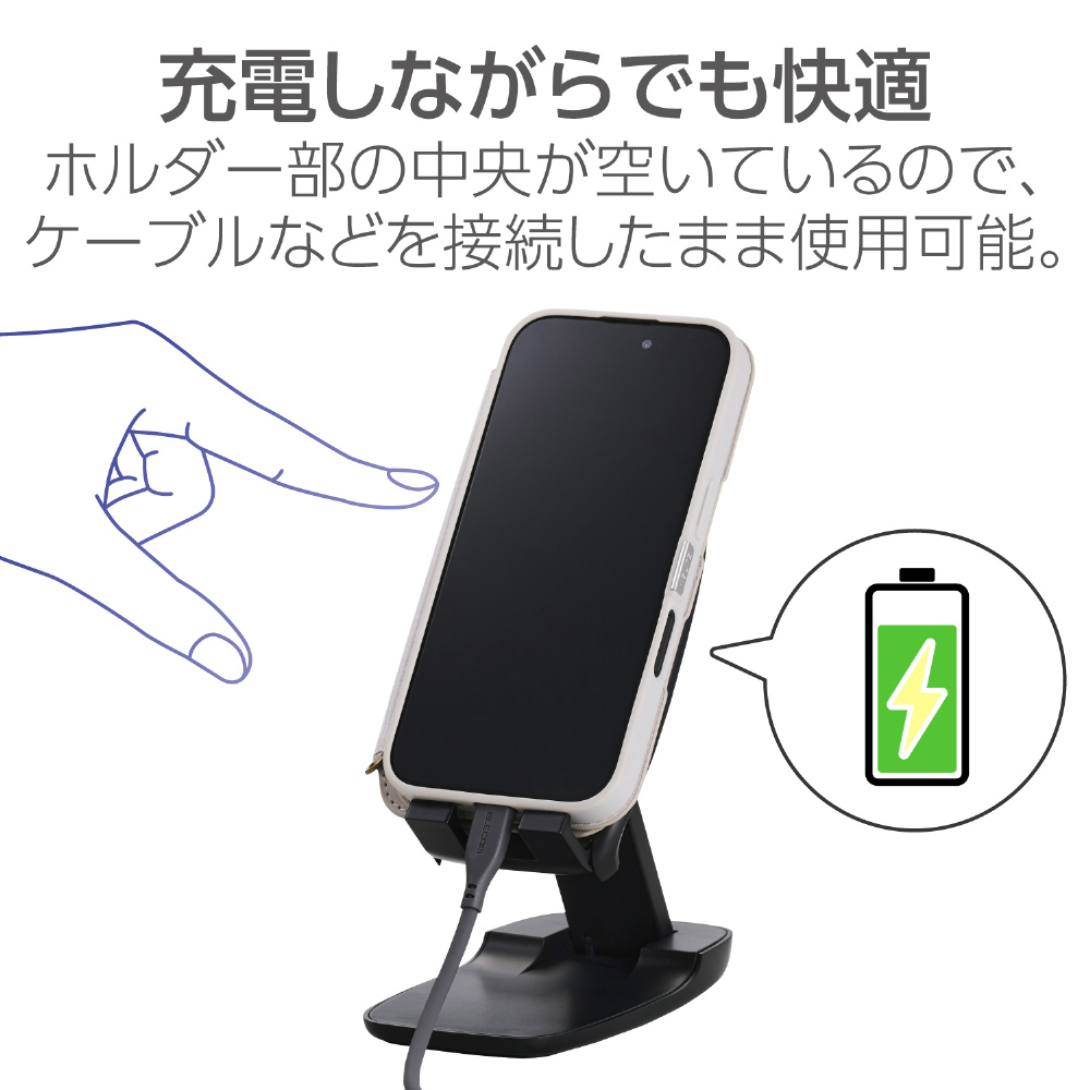 ホルダー部の中央が空いているので、充電ケーブルなどを接続したまま使用できます。