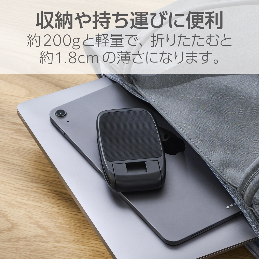 約200gと軽量で、折りたたむと約1.8cmの薄さになるので、持ち運びや収納に便利です。