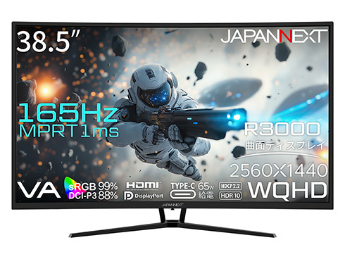 「38.5インチ VAパネル搭載 165Hz/1ms(MPRT)対応 WQHD(2560x1440)解像度 湾曲ゲーミングモニター HDMI DP USB Type-C(最大65W給電) HDR sRGB:99% DCI-P3:88% PS5 WQHD:120Hz接続 湾曲率(R3000) PBP/PIP対応【2年保証】」