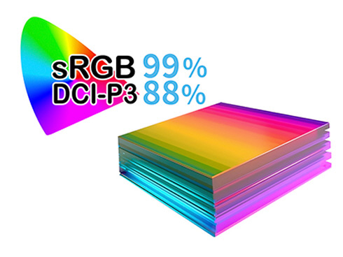 ■sRGB:99%、DCI-P3:88%の広色域と4000:1の高コントラスト比に対応した高画質VAパネルは、より黒をくっきりと表現をすることが可能。コンテンツを色鮮やかに映し出します。