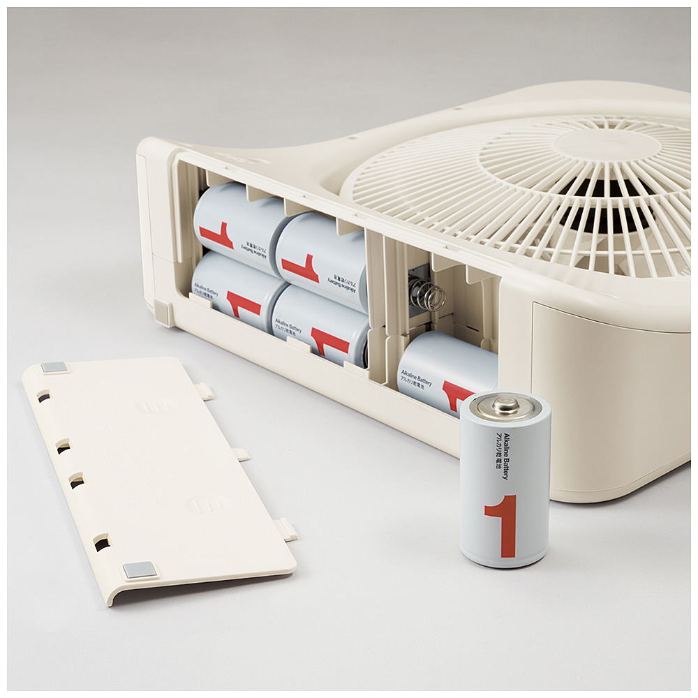 仕様2 【電池連続使用時間】約25時間 (※未使用の乾電池で「強」運転をした場合。時間は電池のメーカーによって異なります)