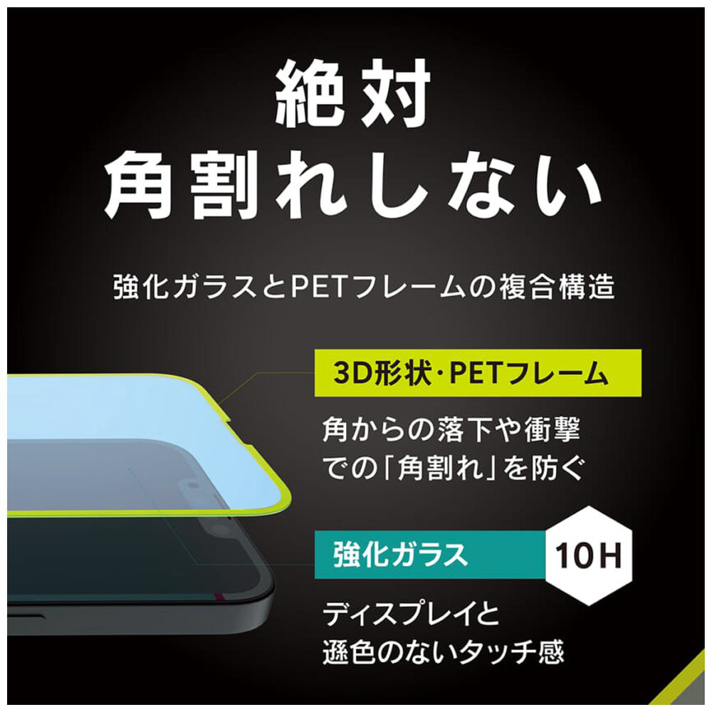 絶対、角割れしない。強化ガラスとPETフレームの複合構造