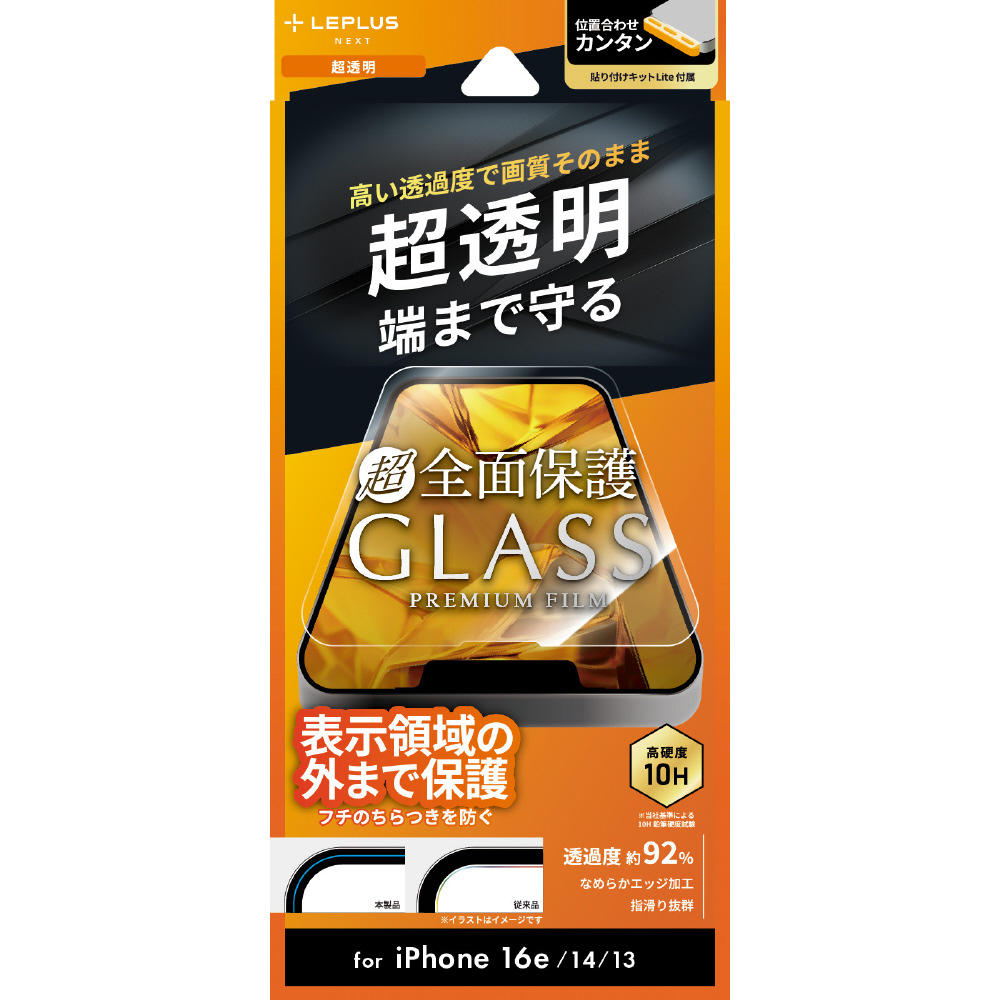 iPhone 16e / 14 / 13 ガラスフィルム「GLASS PREMIUM FILM Lite」全面保護 超透明 LN-ISS24FGLF