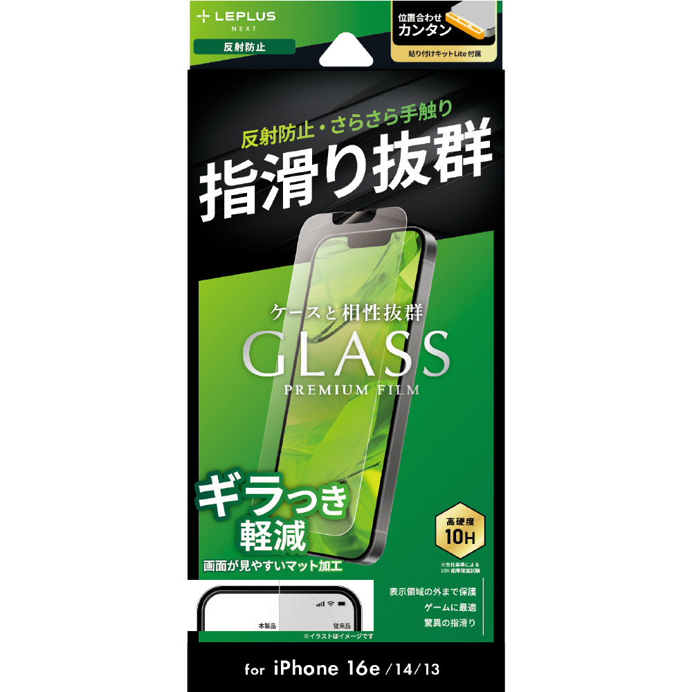 iPhone 16e / 14 / 13 ガラスフィルム「GLASS PREMIUM FILM Lite」 反射防止 LN-ISS24FGLM