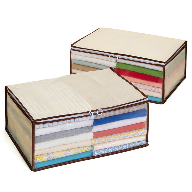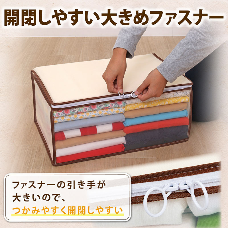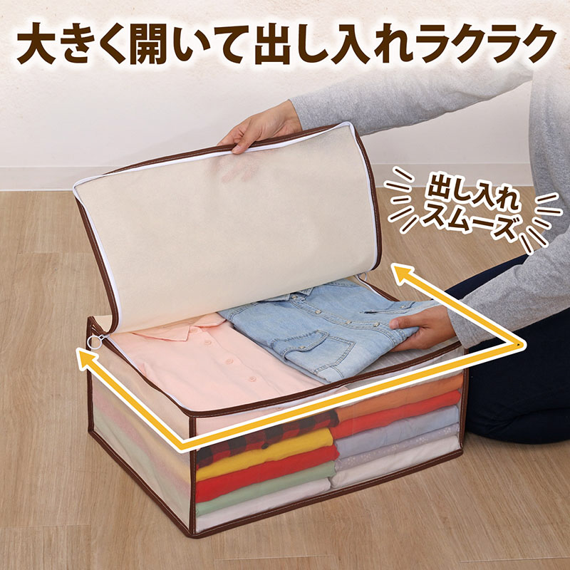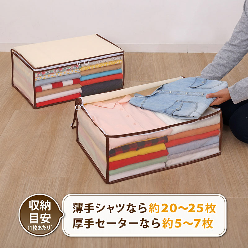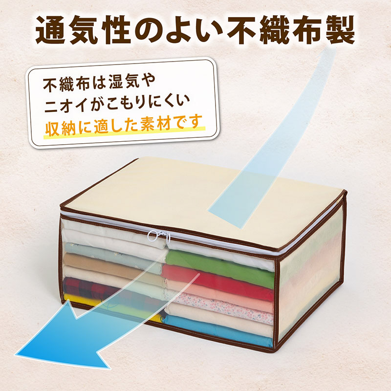 通気性の良い不織布製の衣類用収納ケース。オフシーズンの衣類をほこりから守り保管。