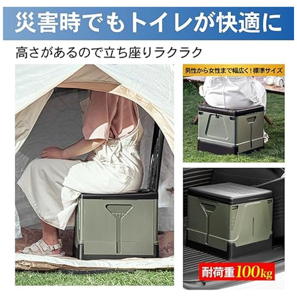 簡易トイレとしてだけではなく、コンテナボックス、踏み台、イスなど使い方もさまざまで多くのシーンに使用できます。