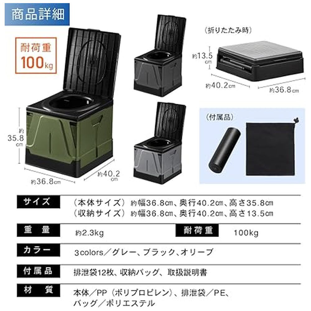 組立式救急トイレ(凝固剤・処理袋付)M グレー P0259EPTWM-GRY