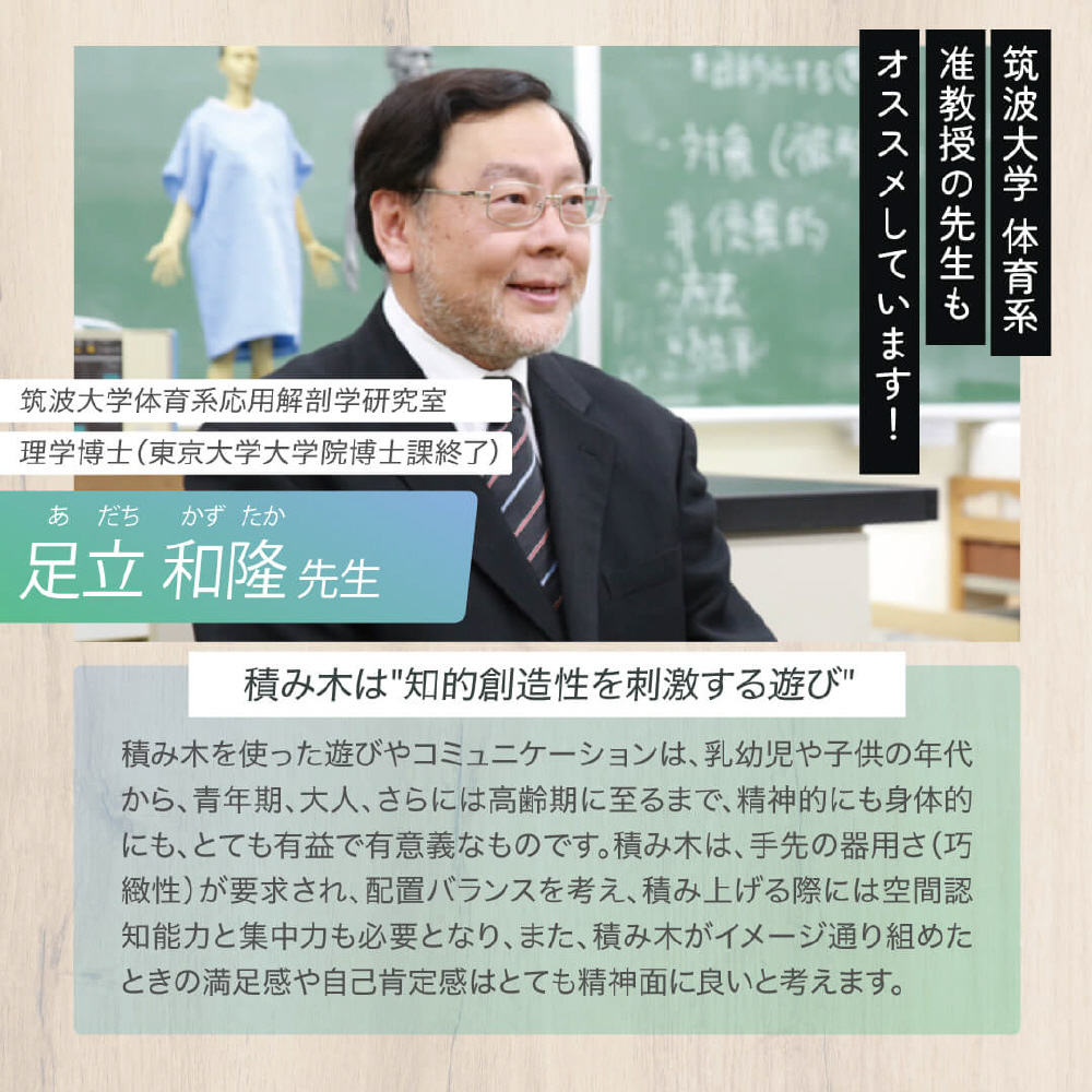 積み木を積み上げるのは脳の活性化や手指の運動にも最適。