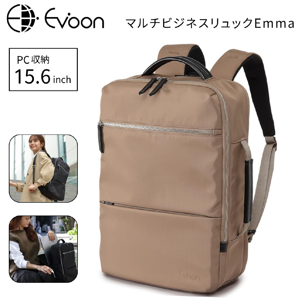 シンプルだけど飽きない、軽いのに大容量、収納もたっぷり。街中で見かける人気ブランド「Evoon(エボーン)」が、女性のために開発した多機能ビジネスリュック「Emma(エマ)」。