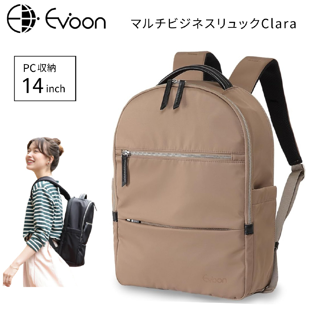 Evoon(エボーン)が提案する「マルチビジネスリュックClara」は、デザインと機能性をどちらも妥協しない、軽量モデルのレディースリュック。