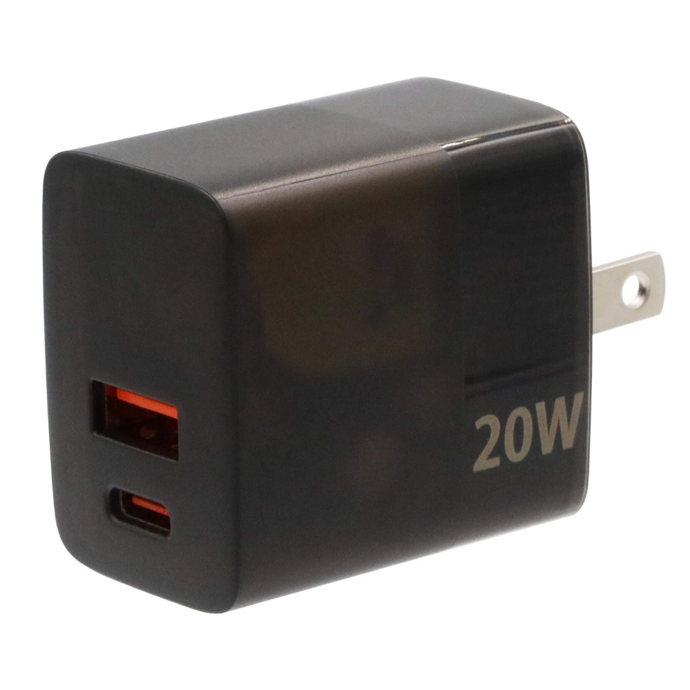 PD対応USB-A Type-C 2口ACアダプター ブラック ACPDCA20BK