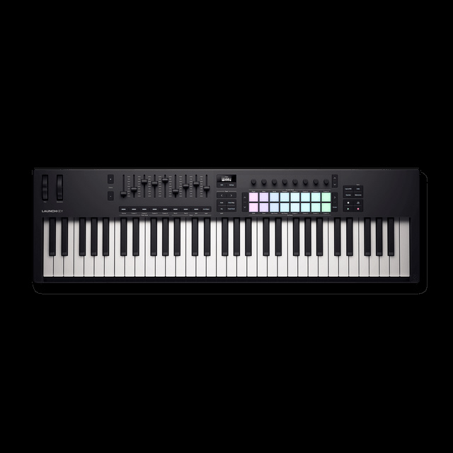 Launchkey 61は、高品質なセミウェイテッド鍵盤、8つのエンドレスエンコーダー、9つのフェーダー、そして楽器の演奏やフィンガードラミング、クリップの操作に使える16個のベロシティ対応パッドを備えた強力なMIDIキーボードです。