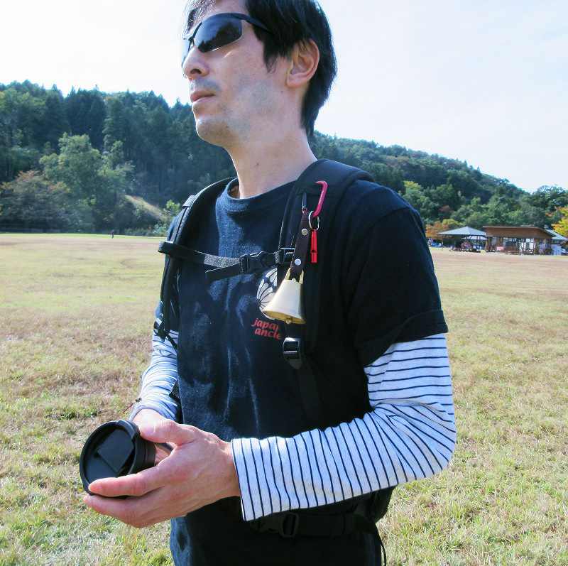 大型真鍮製熊よけ鈴とホイッスルのワンセット。熊の出る地域の携行品に。