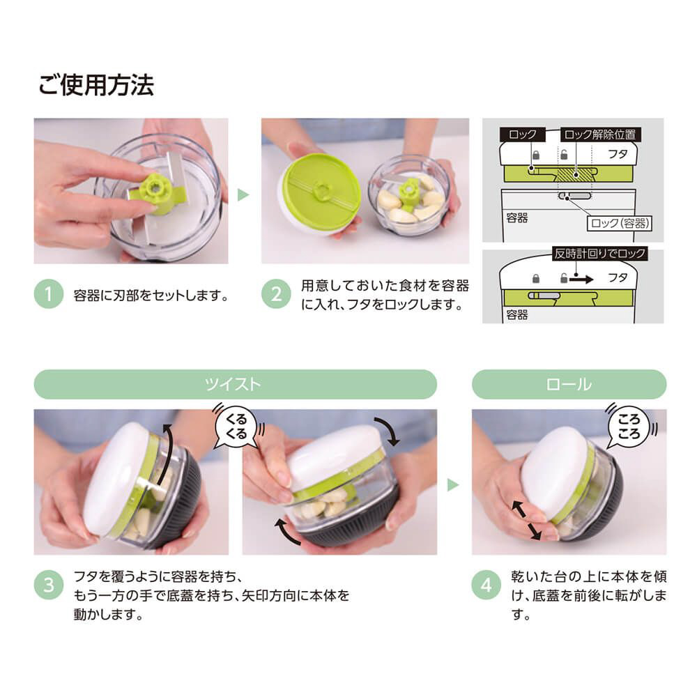くるくるひねってころころ転がすだけ!片手で簡単にみじん切り