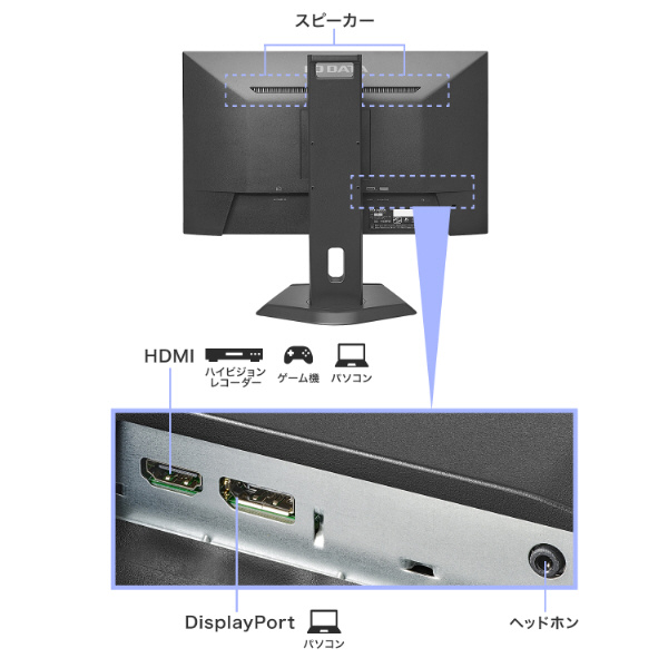 パソコンとの接続に便利なDisplayPortとAV機器などの接続に便利なHDMI端子を搭載しています。