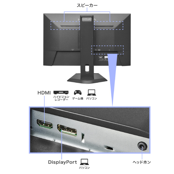 パソコンとの接続に便利なDisplayPortとAV機器などの接続に便利なHDMI端子を搭載しています。