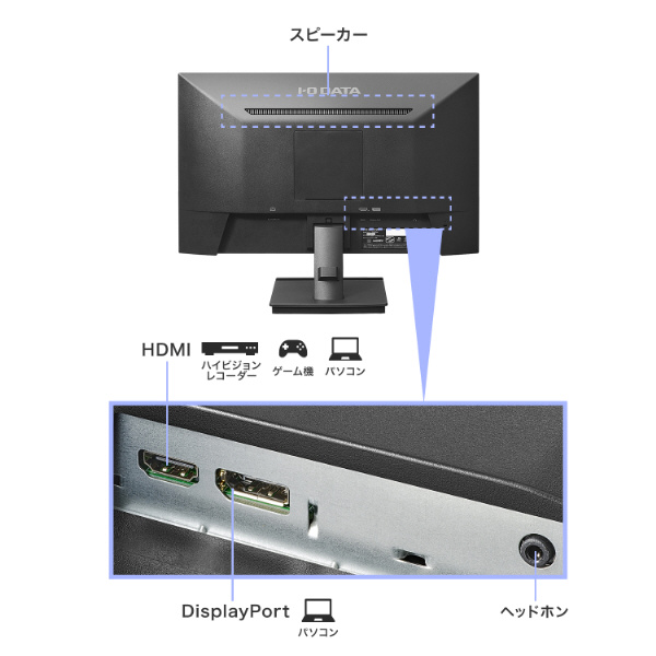 パソコンとの接続に便利なDisplayPortとAV機器などの接続に便利なHDMI端子を搭載しています。
