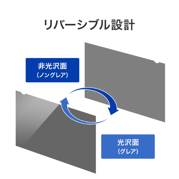 光沢面(グレア)と非光沢面(ノングレア)が選べるリバーシブル設計、ご使用の環境に合わせた使用が可能です。