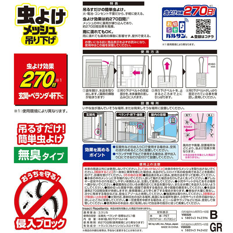 バルサン 虫よけ メッシュ 吊り下げタイプ プレート 効果270日 グレー
