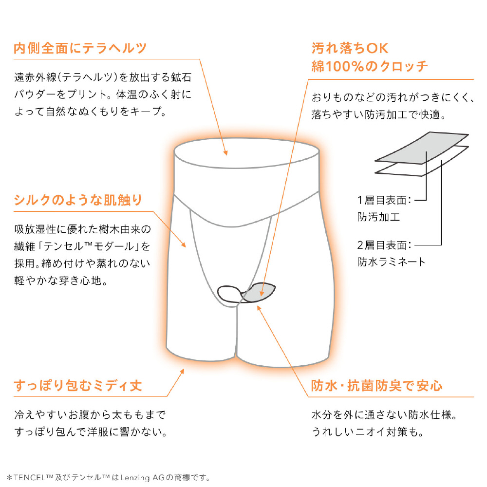 B?-Aが、初期モデルから全ての吸水ショーツに搭載してきた「ぬくもり設計」。最先端技術として注目を集めるテラヘルツを採用し、冷えの悩みに向き合っています。 2024年には、放射率を高めることに成功し、リニューアル。よりパワーアップしました。