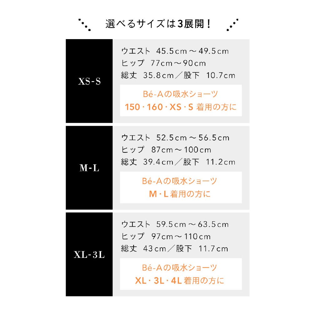 XL-3L:ウエスト 59.5cm?63.5cm / 総丈 43cm / ヒップ 97cm?110cm / 股下 11.7cm
