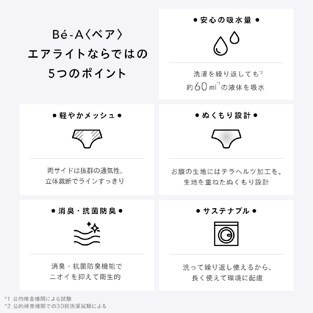 B?-A〈ベア〉のショーツは、高い技術により、これまでにない圧倒的な吸水量を実現。