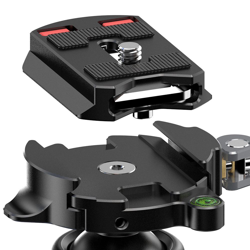 雲台とクイックシューは安全のための二重ロック機構が採用され、撮影機材が誤って落下することを防ぎます。