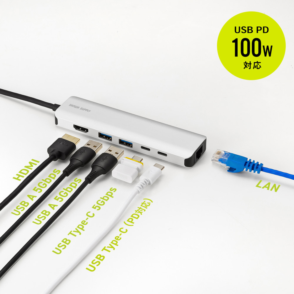 [USB-C オス→メス HDMI / LAN / USB-Ax2 / USB-Cx2] USB PD対応 100W ドッキングステーション USB-DKM9S [USB Power Delivery対応]