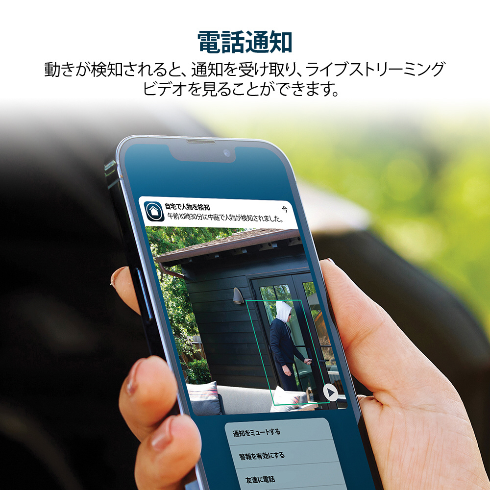 ・スマホでアラートを受け取り、ライブ映像を視聴できます。