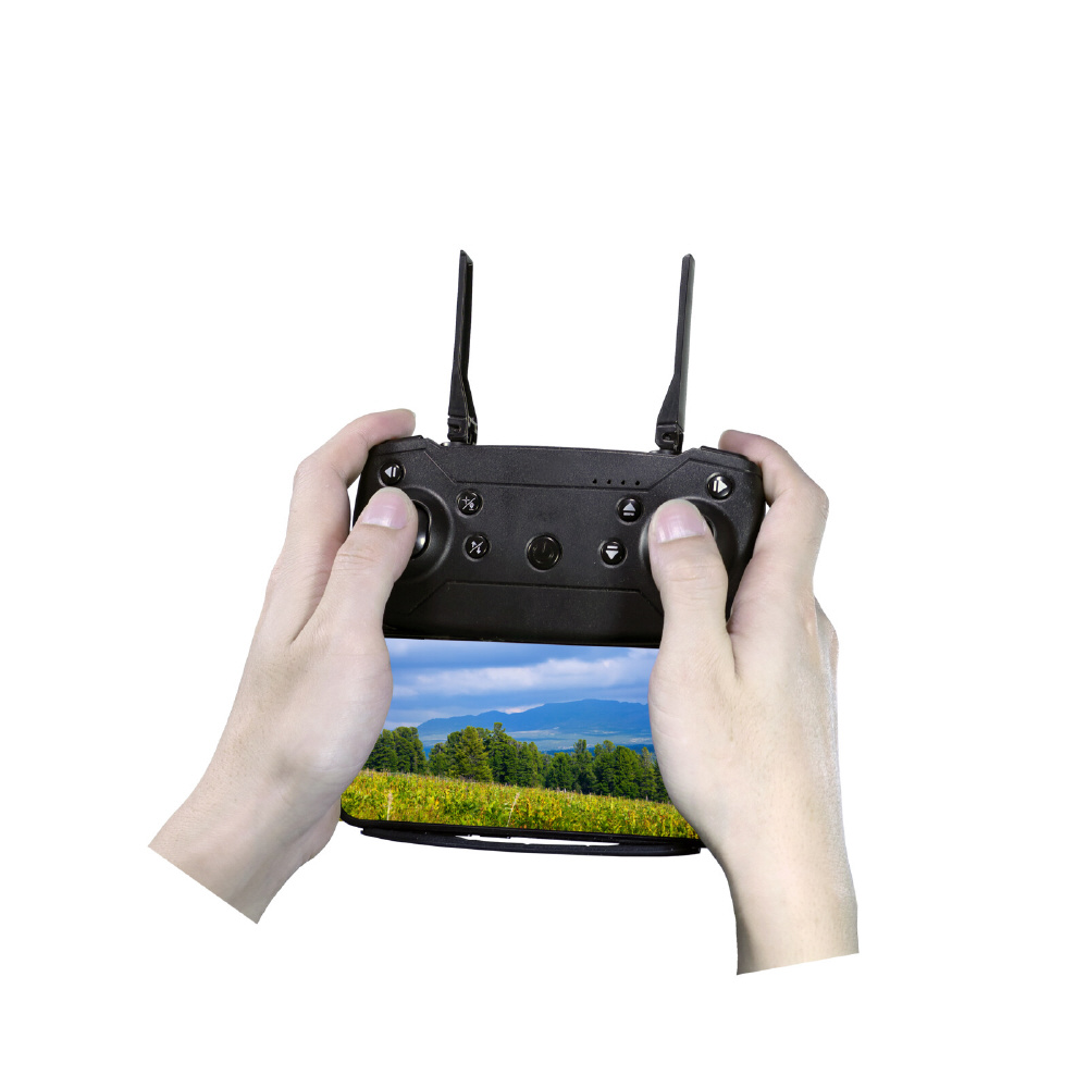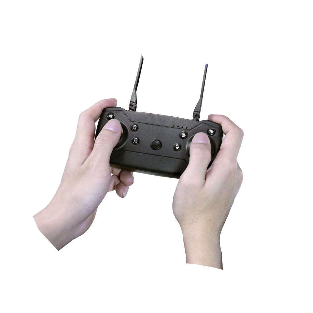 ●付属リモコンで簡単操作/リモコンだけで飛ばせます。ワンボタン離着陸、動画・静止画撮影(スマホ連動時)、3段階スピード調節、360度アクロバット飛行