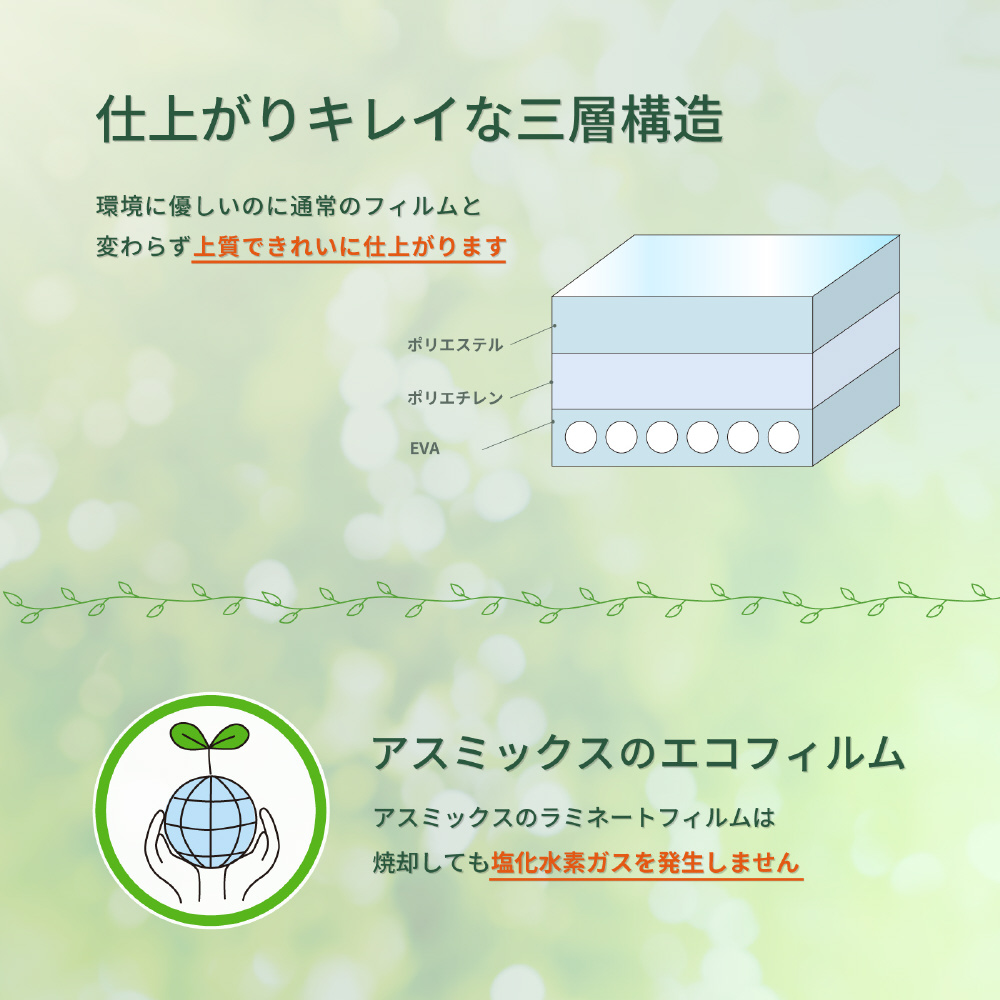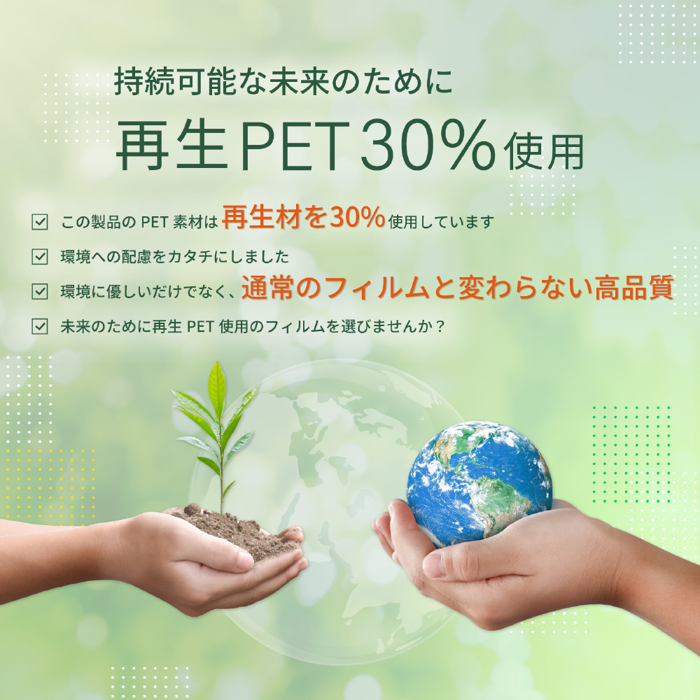 再生PET使用し通常のフィルムと変わらない高品質です。