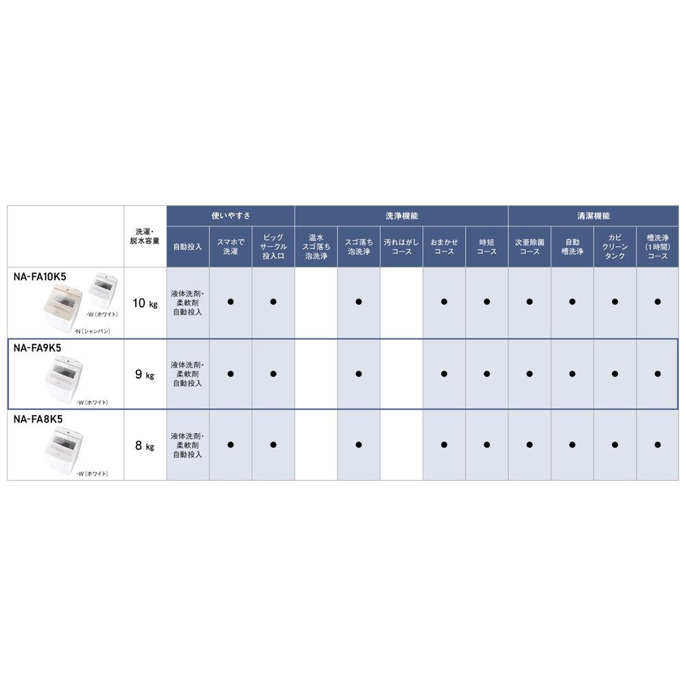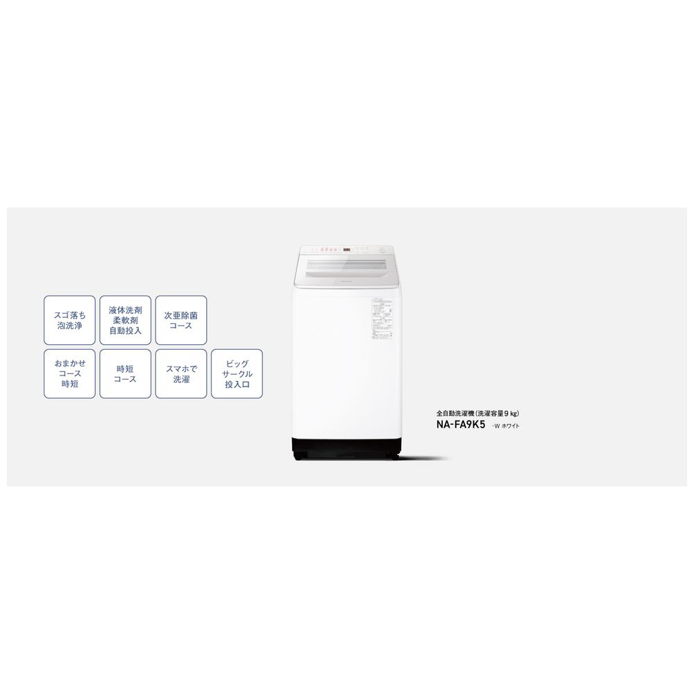 全自動洗濯機 FAシリーズ ホワイト NA-FA9K5-W [洗濯9.0kg /簡易乾燥(送風機能) /上開き]