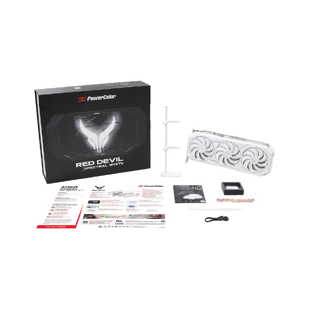 PowerColor Red Devil RX 9070シリーズは、Red Devilは、ゲーミングでの勝利を約束する究極の相棒です。100mm×3基のトリプルファン冷却ソリューション、強固なヒートシンクを貫く7本の6φヒートパイプ、GPUおよびVRAMとの直接接触するプレミアム銅製プレートにより高い放熱性能を実現します。