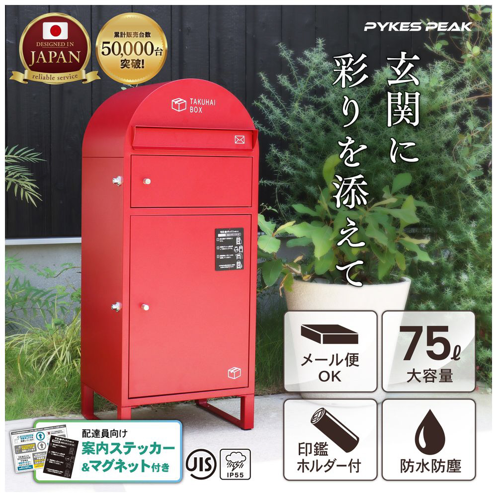 ・【1台2役の多機能、ポスト一体型宅配ボックス】上段には広々としたポスト投函口、下段には大容量の宅配ボックスを備えた1台2役の優れものです。広口のポストはA4サイズよりも大きな郵便物や雑誌、新聞紙、レターパックなども受け取ることができます。また、下扉の大容量スペースは、まとめ買いにも対応し、74Lの収納力で1度にたくさんの荷物も受け取ることができます。さらに、内部には印鑑ホルダーも装備されています。※受け取りは1回のみになります。