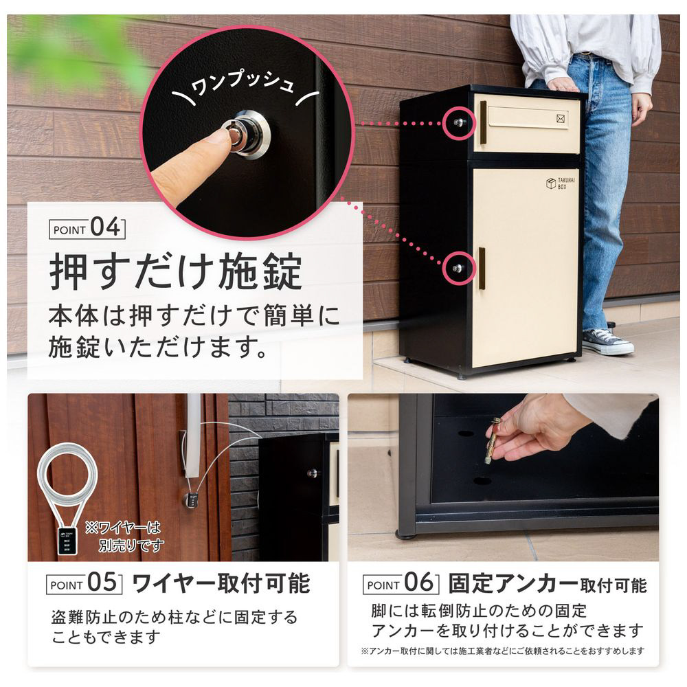 本製品 TAKUHAI BOXは、今までの常識を覆し、デザイン性と機能性を兼ね備えた最新モデルの宅配ボックスです。