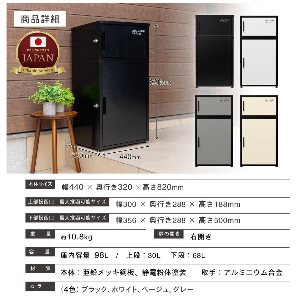 本製品 TAKUHAI BOXは、今までの常識を覆し、デザイン性と機能性を兼ね備えた最新モデルの宅配ボックスです。