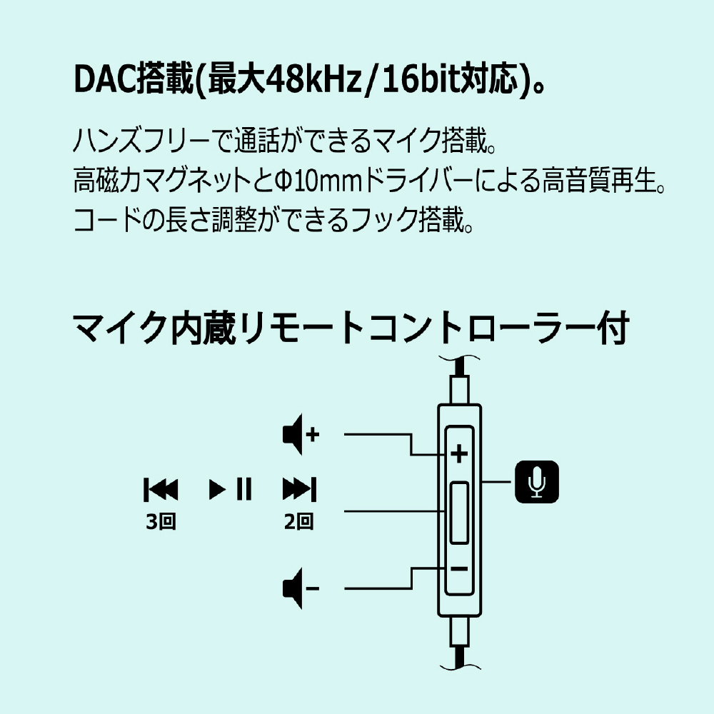 USB TYPE-Cカナル型イヤホンです。最大48kHz/16bit対応のDACを搭載しております。