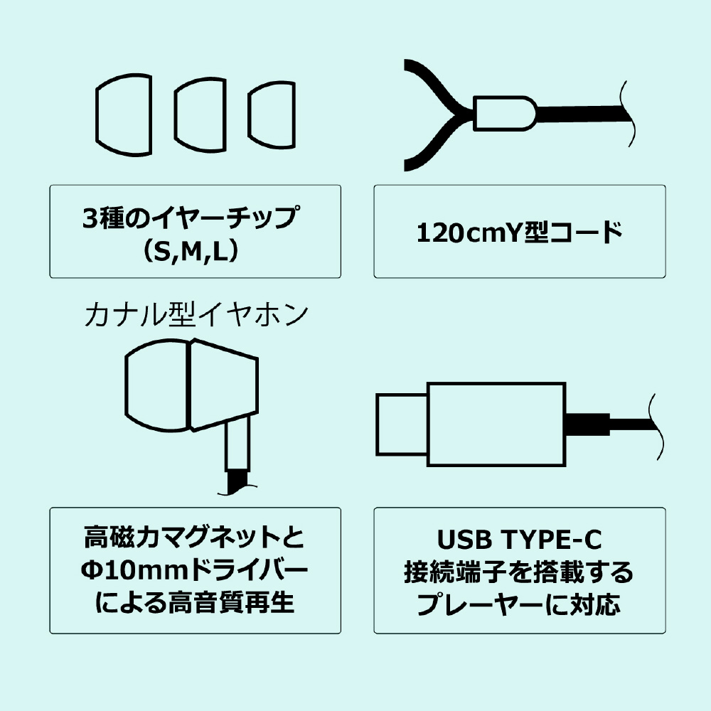 USB TYPE-Cカナル型イヤホンです。最大48kHz/16bit対応のDACを搭載しております。