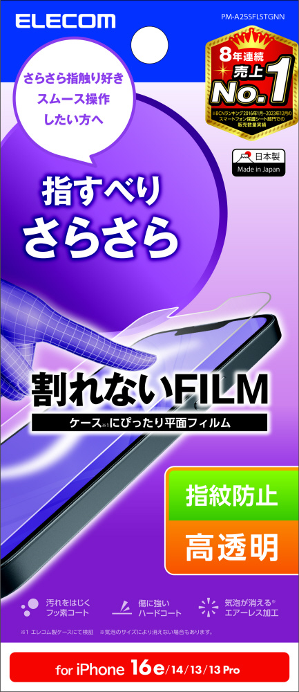iPhone 16e フィルム スムース 指紋防止 高透明 PM-A25SFLSTGNN